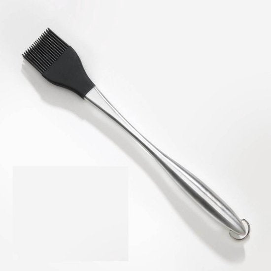 De PRO Siliconen Kwast met RVS‑steel 11,5 van Napoleon is een hoogwaardige grill‑ en keukenkwast met hittebestendige siliconen haren en een robuuste roestvrijstalen steel van ongeveer 30,5 cm. Hiermee bestrijk je vlees, vis, groenten of brood moeiteloos met marinades, olie of sauzen tijdens barbecue‑ of kookavonturen. De kwast ligt comfortabel in de hand en is een onmisbare tool voor sappig grillplezier.