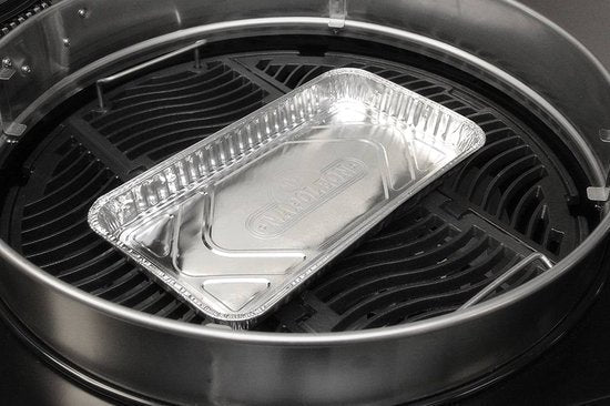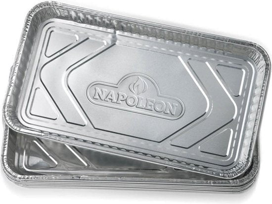 De Napoleon Grill Part 62007 - Replacement Grease Trays 5pk (ook bekend als Napoleon vetopvang‑bak groot) is een set wegwerp aluminium vetopvangbakjes speciaal voor je Napoleon barbecue. Deze stevige bakjes vangen vet en braadvocht op dat tijdens het grillen van vlees of andere gerechten vrijkomt, zodat je BBQ schoon blijft en het onderhoud eenvoudiger wordt. Perfect bij grote stukken vlees of gerechtjes zoals baked beans — gebruik ze meerdere keren en vervang indien vol.